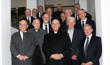 Des Weiteren lud er in der Predigt die Jubilare ein, sich auf den jeweiligen Primizspruch zu besinnen, den jeder von ihnen zu seiner Weihe gewählt hat. Heute dürfe man sich fragen, was damals an diesem Spruch wichtig gewesen sei und inwiefern der das priesterliche Leben geprägt habe. Mit Blick auf den Tagesheiligen Romuald stellte Genn fest, diesen könne man nach heutigen Maßstäben als „Revolutionär“ bezeichnen. Romuald habe sich radikal auf Gott besonnen. „Und das ist doch die innerste Mitte, das will doch jeder von uns“, erklärte Genn. Das Streben danach sei auch nach 50 Jahren priesterlichen Dienstes nicht abgeschlossen.