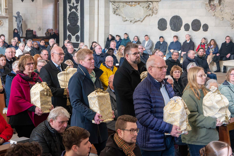 Die Weihe der Öle nahm Weihbischof Theising vor. Anschließend holten sich die Gemeindevertreter ihre Anteile daran ab. Musikalisch gestalteten die Capella Ludgeriana, Midori Goto und Adrian Kowolik an den Violinen sowie Domorganist Thomas Schmitz unter Gesamtleitung von Domkapellmeister Alexander Lauer die Messe.